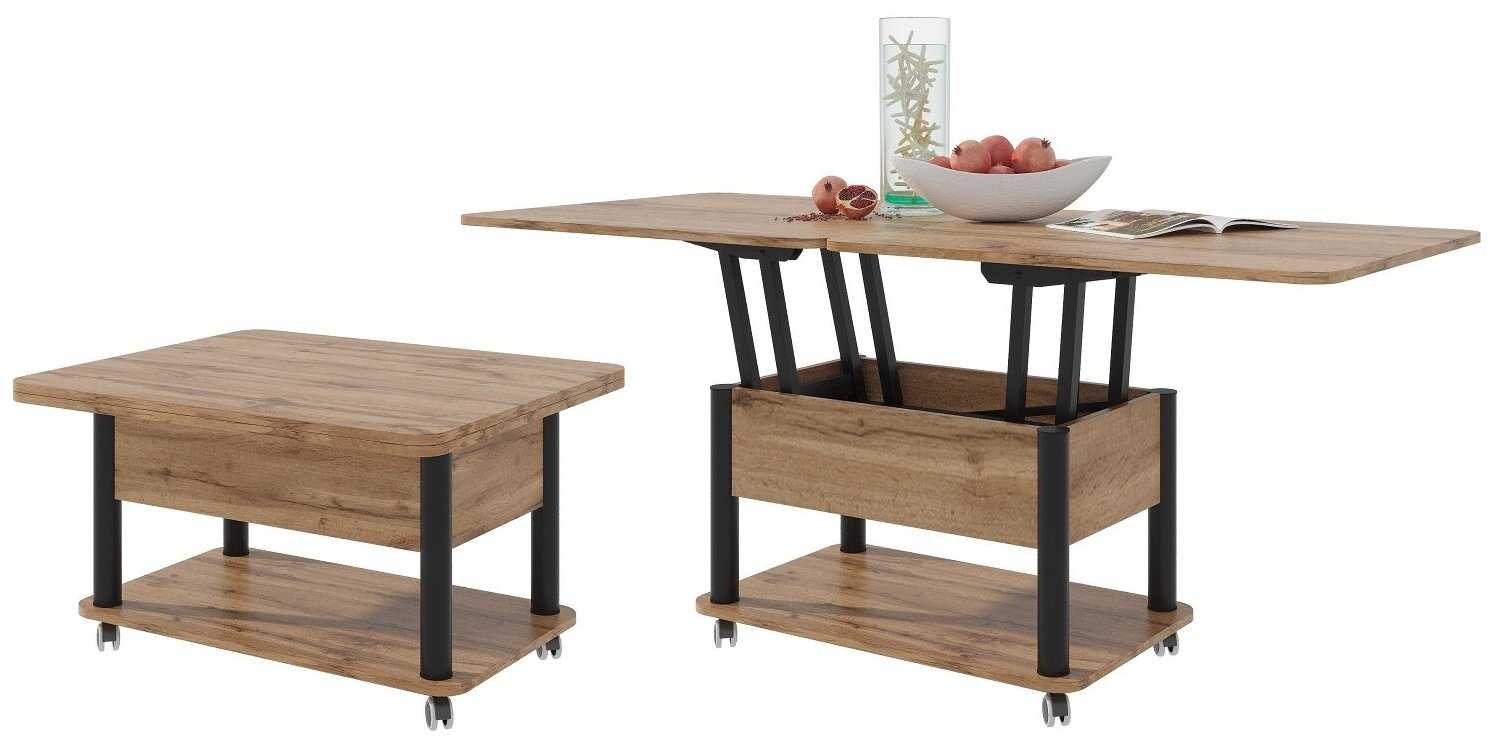 Изменение высоты стола — краеугольный камень многофункциональности. Эта опция позволяет совмещать журнальный столик с обеденным. При «наплыве» гостей вы увеличиваете полезную площадь столешницы, а в остальное время используете трансформер в качестве неприметного журнального столика.