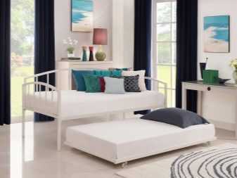 Конструкция выдвижной кровати состоит из двух частей: снабжённое роликами спальное место, которое выдвигается при необходимости и основание (сама кровать или различные ниши). Вариант, где основанием служит кровать со встроенным дополнительным спальным местом, используется для детей. Для семей, имеющих двух детей, проживающих в одной комнате, прекрасно подойдёт выкатная детская кровать с дополнительным спальным местом внизу. Конструкция данного вида имеет ряд преимуществ не только перед обычными кроватями, но и перед высокими двухъярусными вариантами.