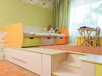 На сегодняшний день производители выпускают множество разнообразных модификаций не только с ящиками, но и с лесенками. Эти небольшие сооружения помогают ребенку подняться к верхней части в вечернее время и благополучно спуститься утром. Некоторые производители обустраивают такие лесенки дополнительными ящичками. Получаются удобные ступеньки с комодом. Для безопасности верхний конструктив кровати оснащается бортиками, защищающими ребёнка от внезапного падения во время сна.