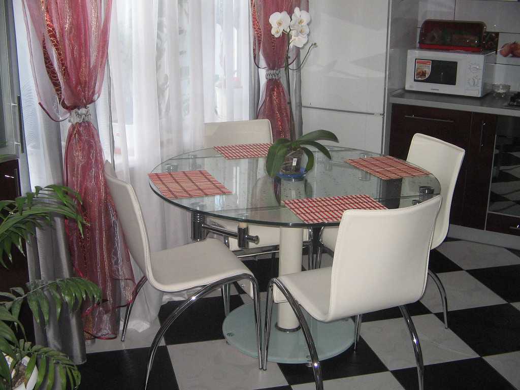 - Стол с прозрачной столешницей может стать настоящим украшением кухни, ее изюминкой.