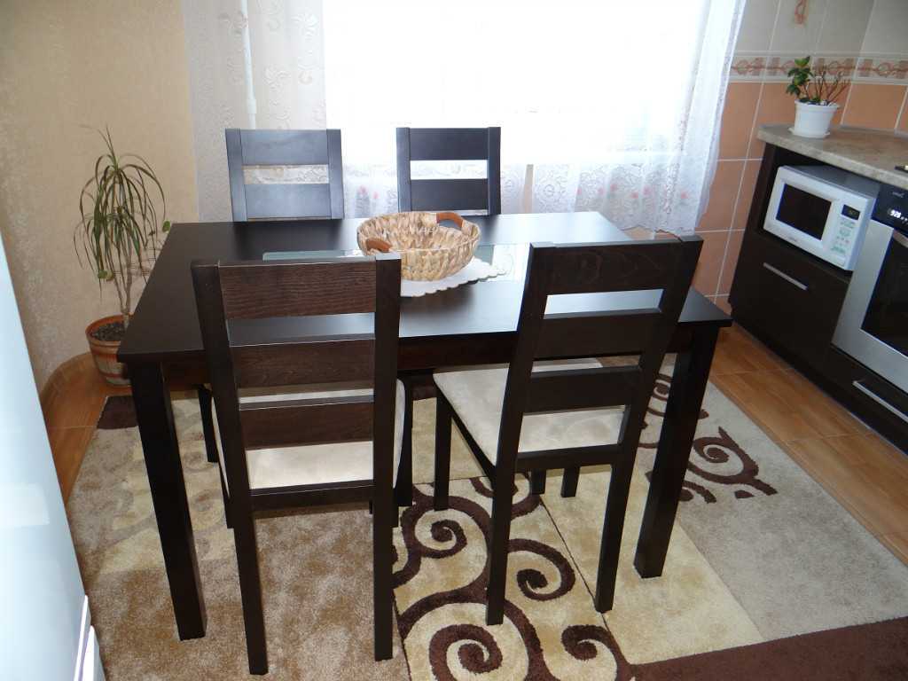 - Материал. Он должен быть прочным и экологичным, срок эксплуатации такой мебели достаточно большой. В связи с тем, что столы и стулья будут размещаться на кухне, материал, из которого они изготовлены, должен легко очищаться, быть влагостойким, не деформироваться от высоких температур.