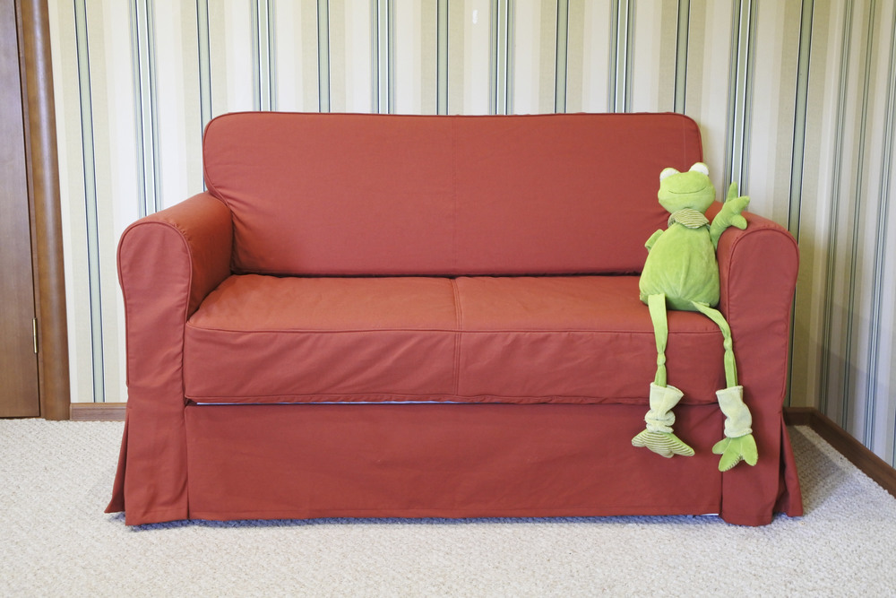 - Такой предмет в гостиной не только дополняет интерьер, но и служит в качестве дополнительного спального места. Она не привлекает к себе внимания.
