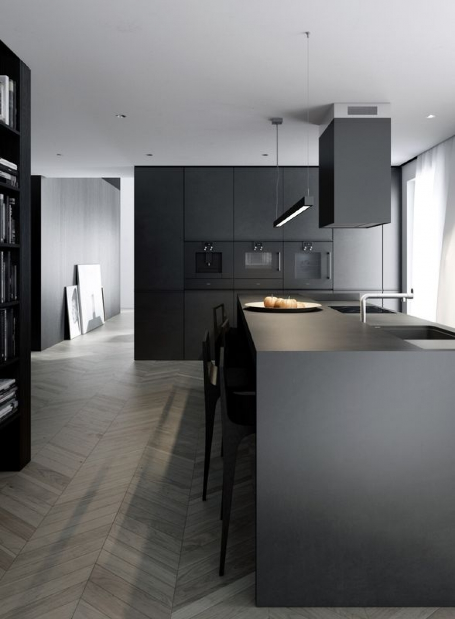 Несмотря на то, что темные фасады или отделка будут несомненно привлекать к себе внимание, в темных помещениях с недостатком дневного света их нужно использовать крайне осторожно