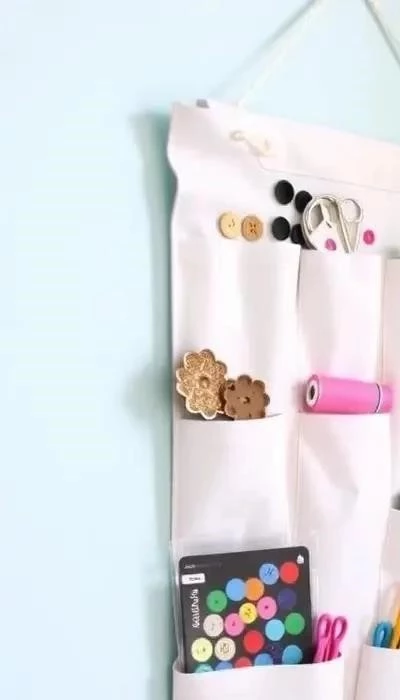 Описание: Пришейте карманы к плотной основе и создайте настенный органайзер для хранения различных предметов. Это отличный способ организовать пространство в комнате.