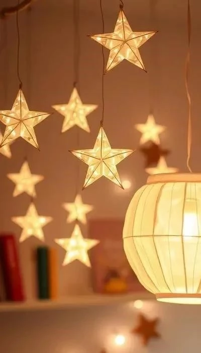 Гирлянды – можно развесить на стене, потолке или вокруг кровати. Ночники – можно сделать своими руками из банок, бутылок или других подручных материалов. Важно использовать безопасные лампочки.