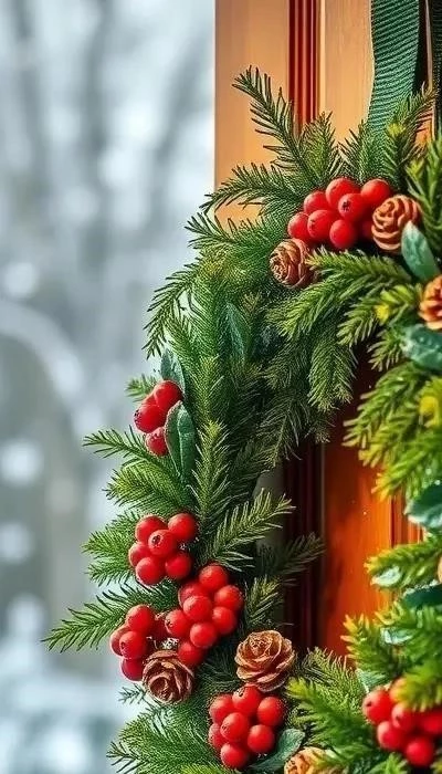 Создайте рождественский венок из еловых веток. Для этого вам понадобится проволочный каркас, еловые ветки, лента, шишки, бусины, другие декоративные элементы. Прикрепите еловые ветки к каркасу с помощью проволоки. Украсьте венок лентой, шишками, бусинами и другими декоративными элементами. Венок можно повесить на дверь или стену. Пример: обмотайте проволочный каркас еловыми ветками, закрепив их проволокой. Украсьте венок красными лентами, шишками и маленькими елочными игрушками.