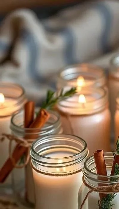 Превратите обычные стеклянные банки в красивые подсвечники. Можно покрасить банки акриловыми красками, украсить их блестками, наклеить на них снежинки или другие фигурки. Внутрь банки можно положить песок, ракушки или другие декоративные элементы. Пример: покрасьте банку белой акриловой краской. Приклейте к банке снежинки, вырезанные из бумаги.
