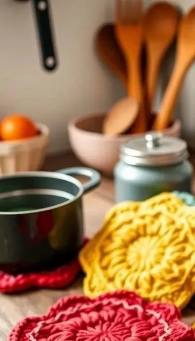 Вязаные прихватки, подставки и салфетки – это практичные и стильные аксессуары для кухни. Их можно вязать из хлопковой пряжи, чтобы они были устойчивы к высоким температурам.