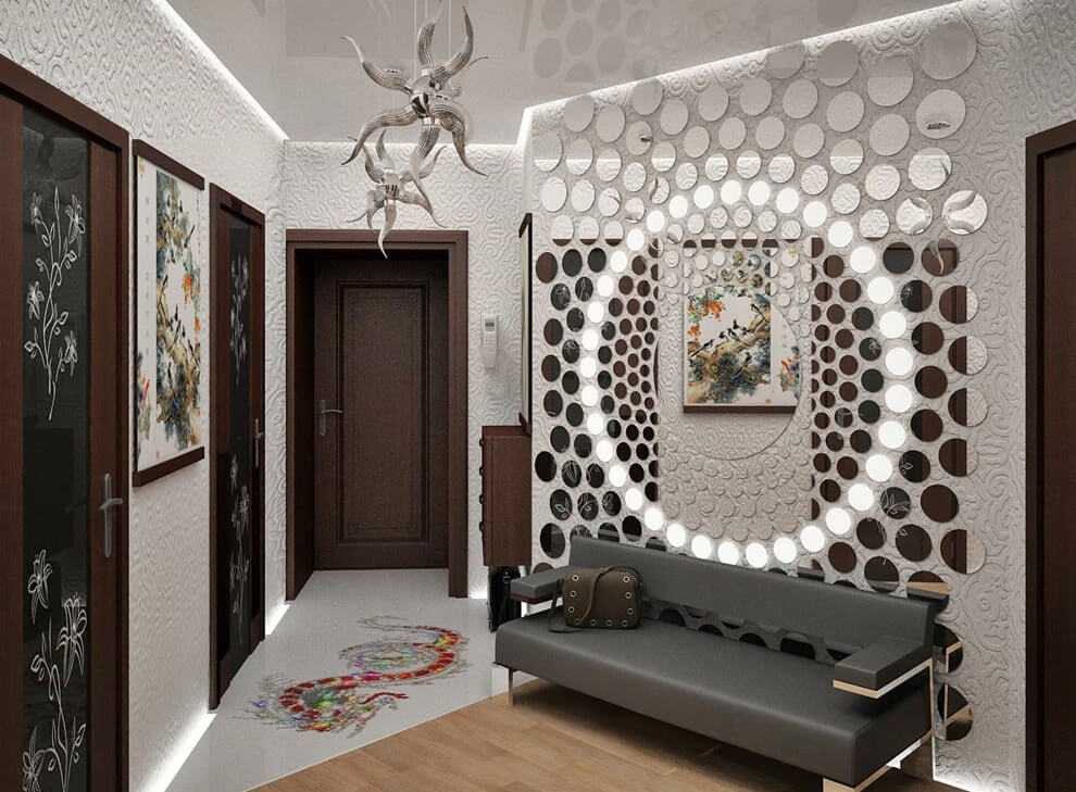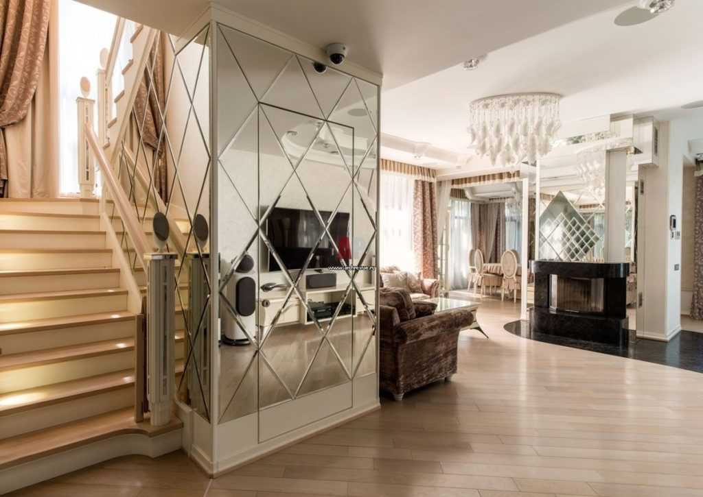 Размещение зеркальных элементов на настенных поверхностях создаст невероятное ощущение лабиринта, что отрицательно скажется на психике хозяев дома.