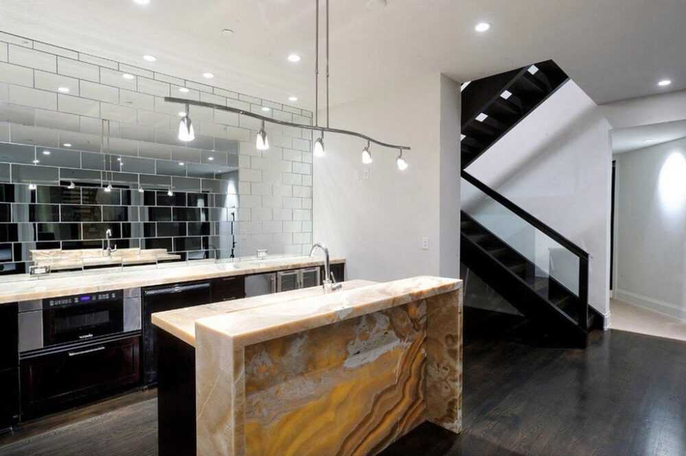 Зеркальная плитка с фацетом в интерьере кухниИсточник remontkit.ru
