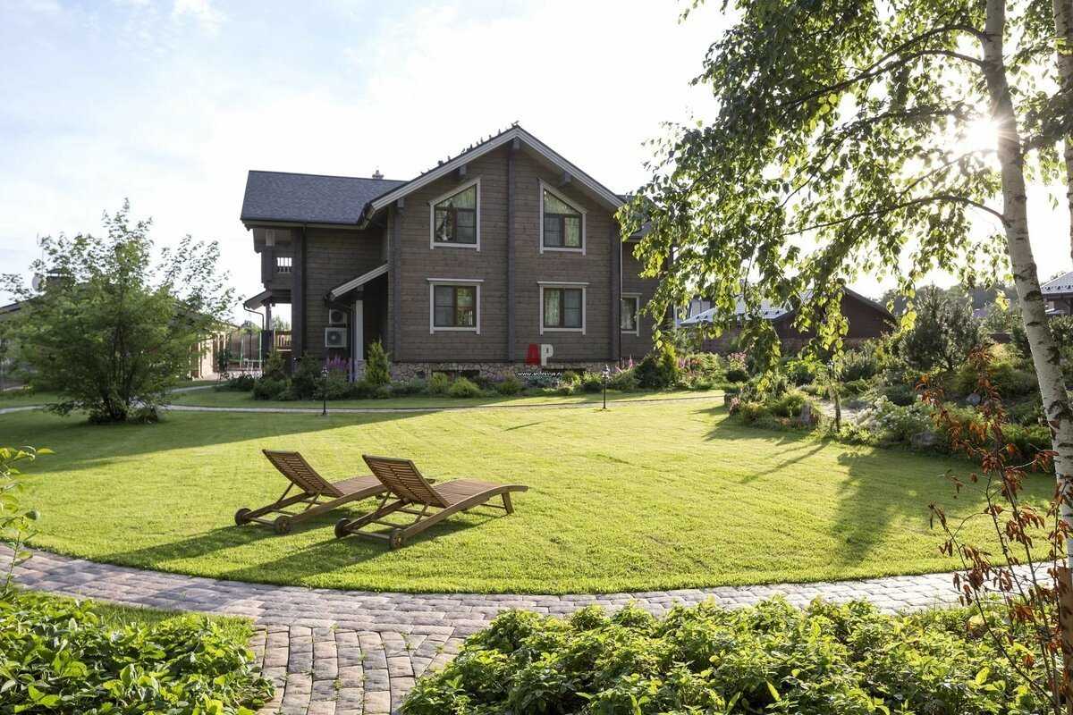 Дачный дом в скандинавском стиле как будто окружен лоскутком леса. На участке в скандинавском стиле должно быть много хвойных культур, кустарников и травы.