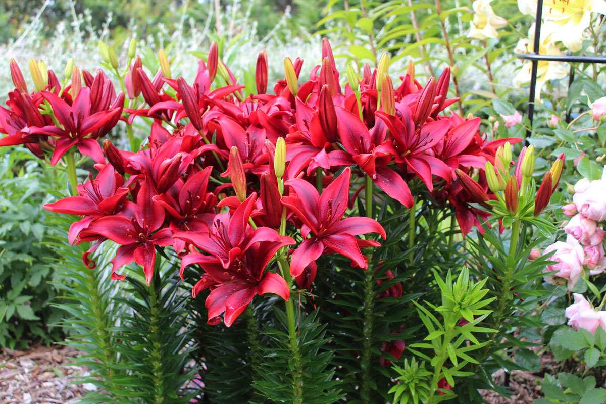 - Лилии September. Авиньон. Это азиатский гибрид с алыми цветами. Период цветения: май – июль. Высота до 60 см.