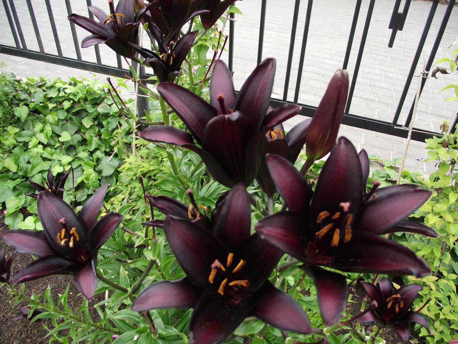 Стебли этого сорта лилий поднимаются на 60-80 см и несут 10-12 цветков среднего размера (12-15 см). Окраска цветков вызывающая – черная с фиолетовым отливом, а основание и кончики лепестков – ярко-желтые. По всему лепестку разбросаны темно-фиолетовые точки.