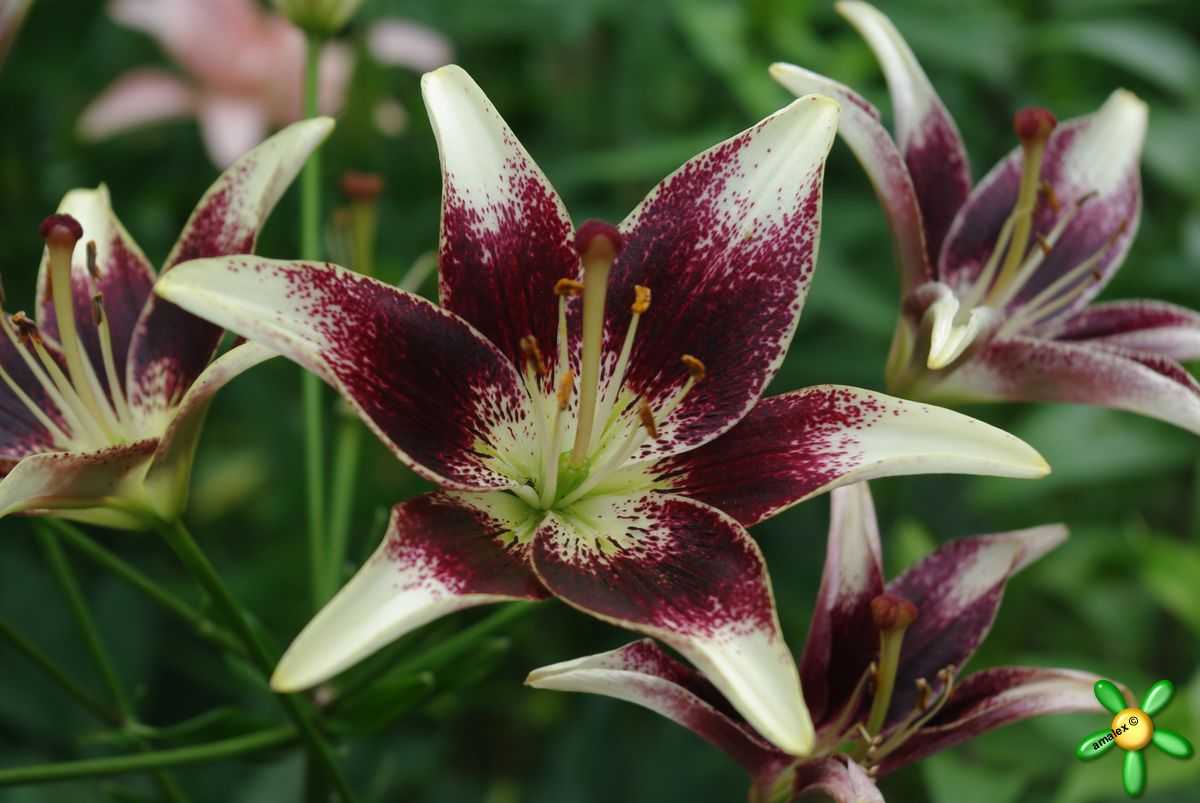 Невероятно эффектная лилия Блэк Чарм — это азиатский гибрид, который отличается необычной расцветкой цветов. Высота растения может достигать 100 см. Цветки достаточно крупные.