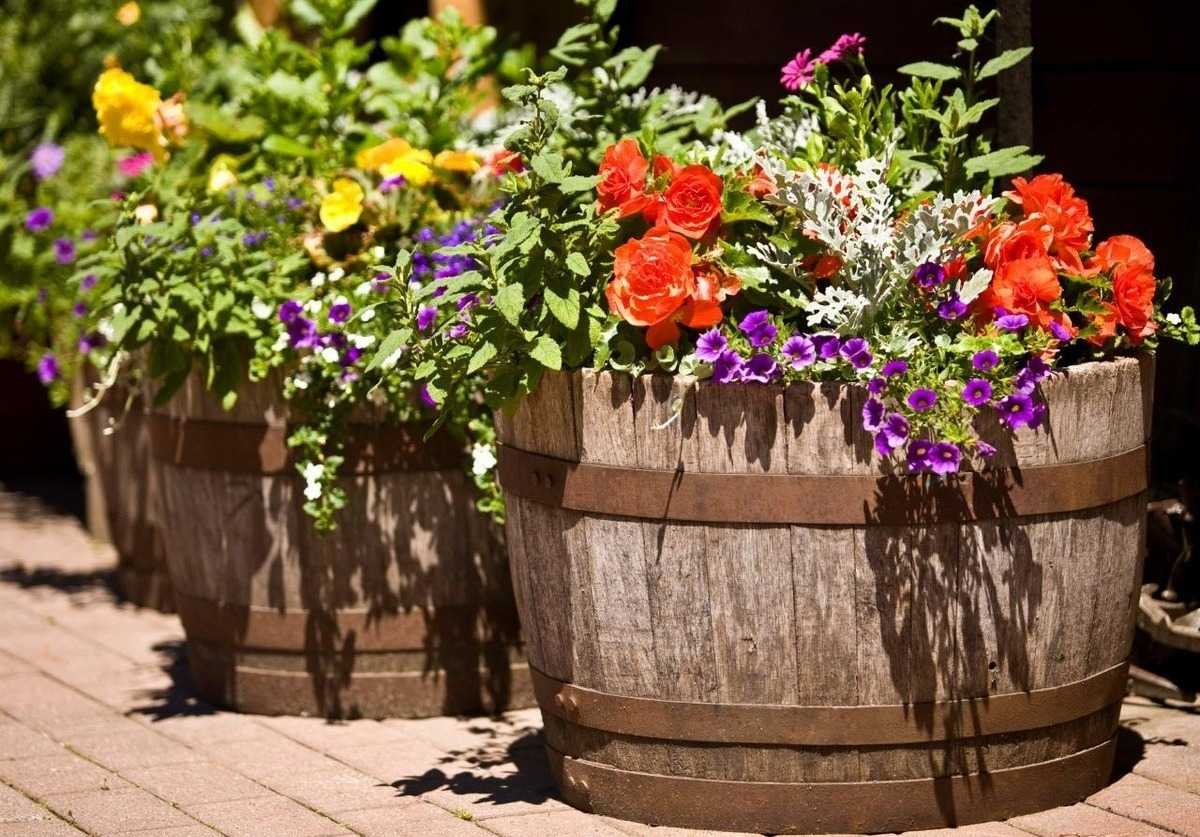 Для роли кашпо подойдут пятилитровые пластиковые бутылки с обрезанным дном или горлышком, плетеные из ивы корзины, дырявые ведра, чайники и другие вещи, которые были претендентами на выброс.
