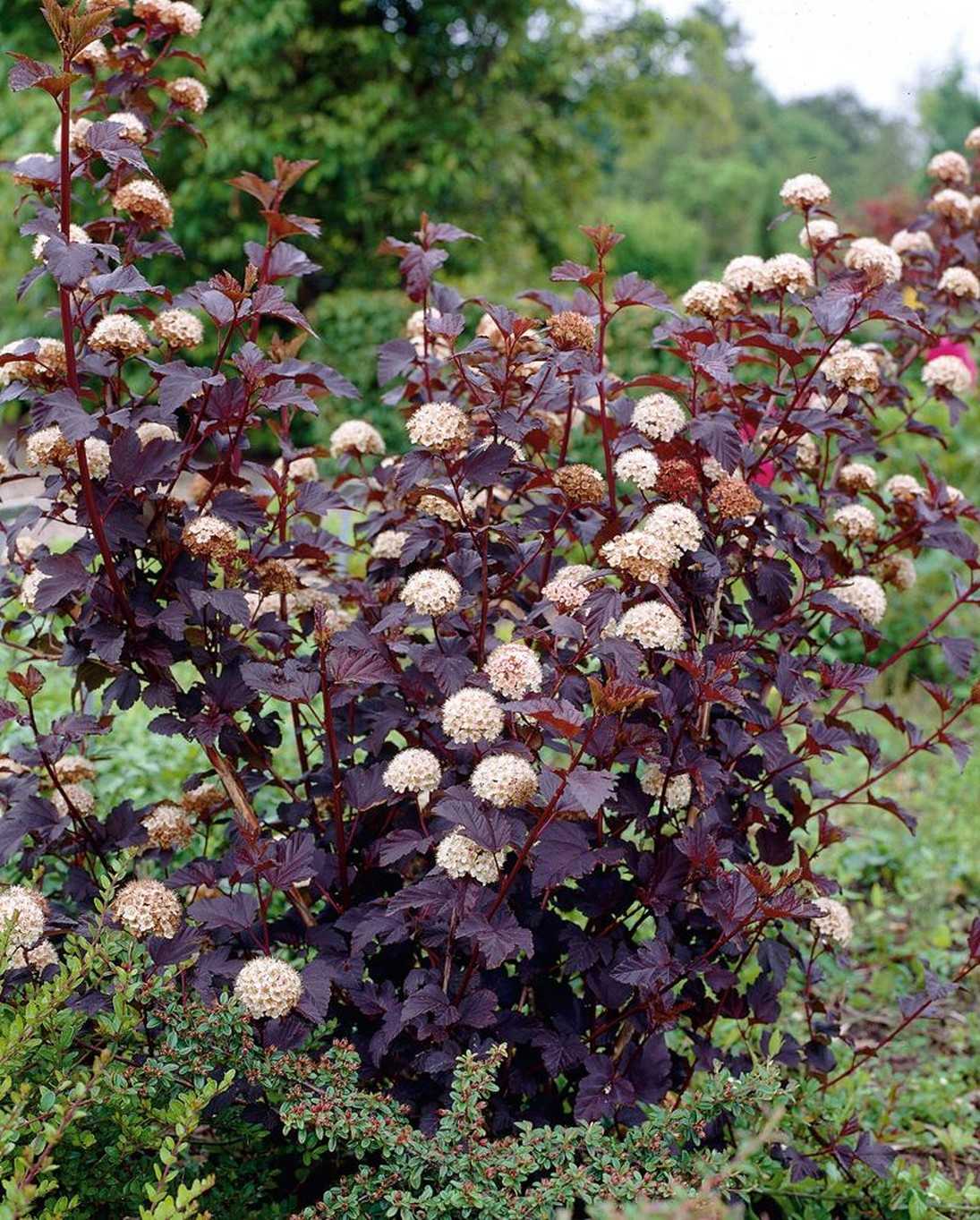 — высокий куст до 3 метров в высоту. Цвет листвы пурпурно-красный, в тени приобретает зеленый окрас с легким пурпурным оттенком -