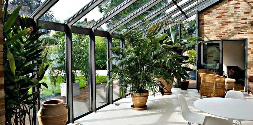 Характерной чертой всех типов зимних садов является максимум остекления (фасадных стен и даже крыши)