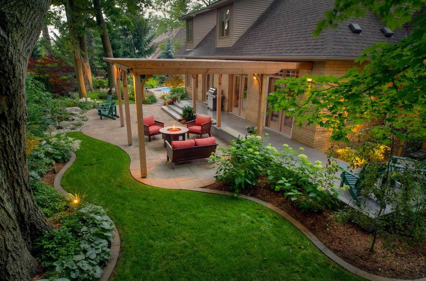 Дорогу к зоне отдыха и барбекю могут украшать не только цветы, но и грядки с лекарственными травами и овощными культурами. Двухуровневая конструкция выглядит очень оригинально. А как удобно готовить из свежий продуктов, только что собранных с грядки!