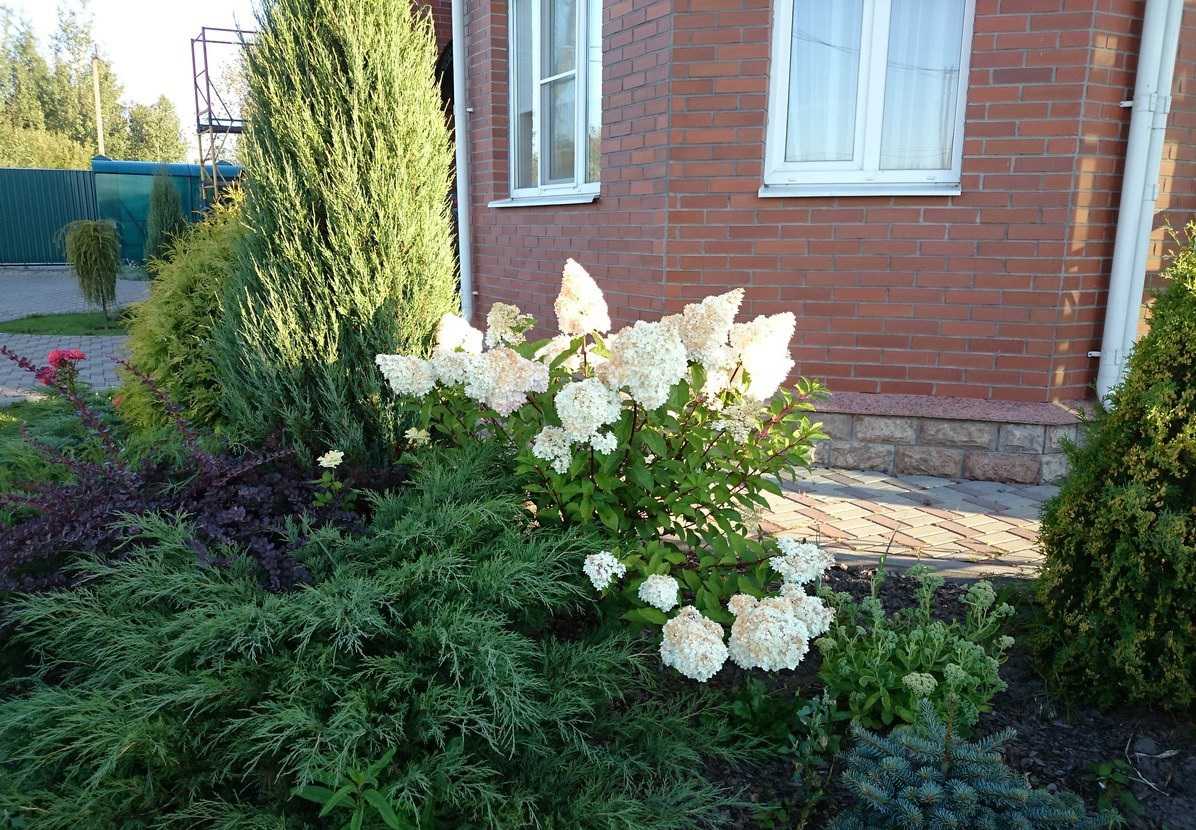 Соседи для гортензии метельчатой: розы, хвойные, спирея