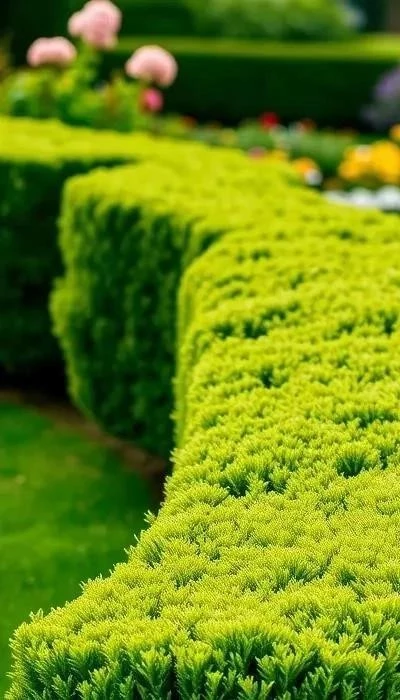 - Живые изгороди: Используются для зонирования пространства и создания уютных уголков. Чаще всего для этого используют самшит, кизильник или боярышник.