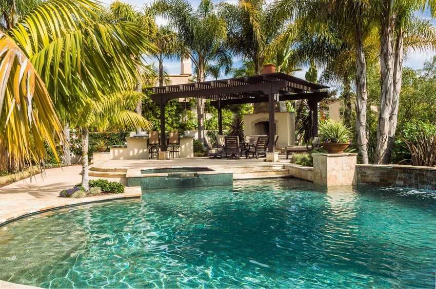 Зону барбекю на даче неплохо организовать около других важных объектов: бассейна, бани. Тогда площадка для отдыха будет масштабной и включающей в себя массу развлечений: от гриля до плавания.