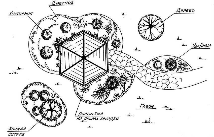Как бы ни говорили, но устраиваемая на участке беседка, должна вписываться в общий ландшафт, тем более, что вы ставите не просто четыре столба с крышей, а делаете свое сооружение искусством дизайна.