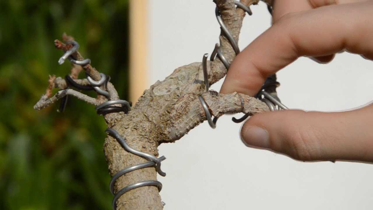 Сложнее всего накладывать проволоку на хвойные породы дерева. Ее закрепляют на каждом побеге (до самой верхушки). Лиственные растения можно корректировать с помощью обрезки ветвей. На гладкоствольных деревьях (например, клене), проволоку не оставляют надолго, иначе она оставит отметины.