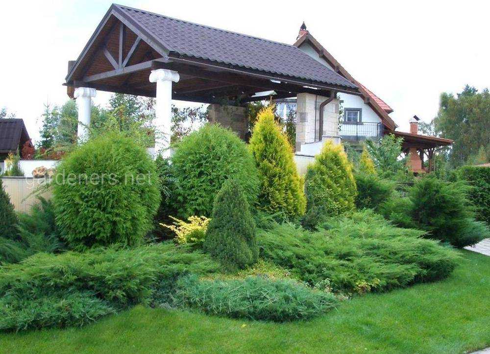 Лучше всего с зеленью туй, можжевельников, кипарисовиков и прочих хвойных сочетаются