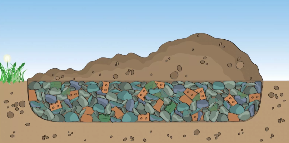 Для этого на дно котлована следует засыпать гравий, щебень, разбитые на осколки кирпичи, пр. Если этого не сделать, тогда камни будут гнить и покрываться мхом.
