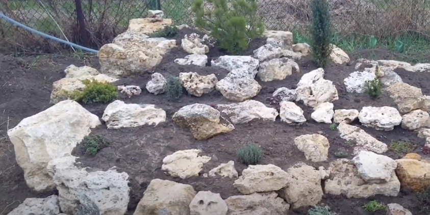 Альпийская горка в ландшафте должна выглядеть как естественное нагромождение каменных валунов. Поэтому можно допустить небольшую хаотичность, чтобы этого достигнуть. Со стороны нужно проверять, выглядит ли конструкция как природный объект. Когда камни были разложены на запланированные места, тогда потребует их оставить для приседания грунта на 21 день.