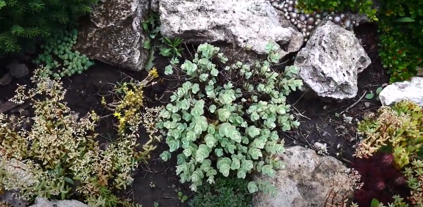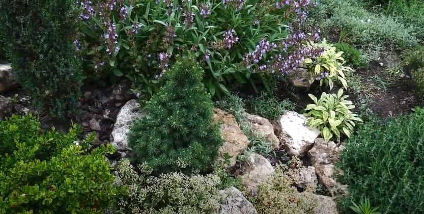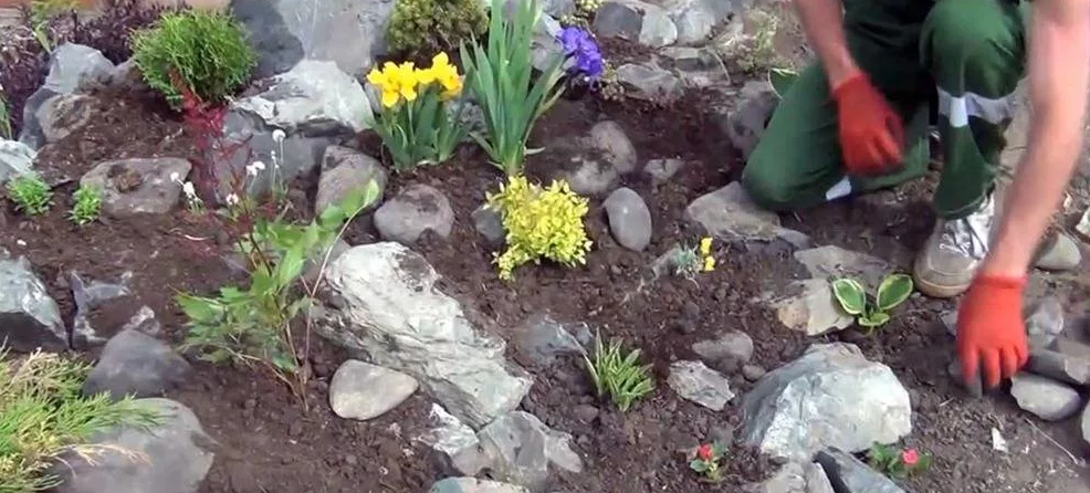 Когда камни установлены, промежутки между ними заполнены землёй, пора приступить к озеленению на каменистом участке.