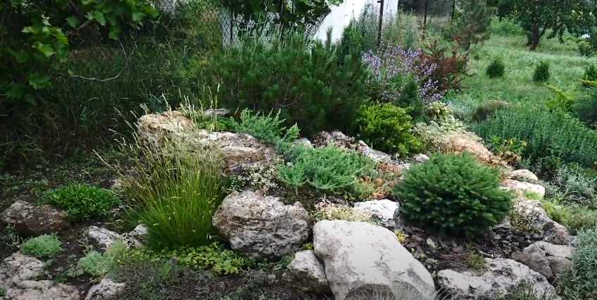 Это уникальный элемент ландшафтного дизайна, который имитирует горные склоны Альп с наличием каменных выступов и пестрого разнотравия.