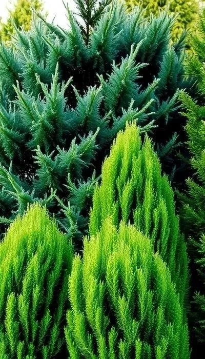 - Хвойные кустарники: Можжевельник, туя, кипарисовик – вечнозеленые красавцы, придающие саду структуру и торжественность. Они прекрасно сочетаются с другими растениями и не требуют сложного ухода.