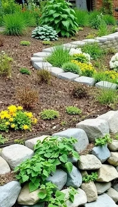 - Укрепление склонов: Использование габионов, подпорных стенок, георешеток. Плюсы: Предотвращает оползни, создает устойчивый рельеф. Минусы: Может выглядеть неестественно, требует регулярного обслуживания. Стоимость: от 8 000 руб./м².