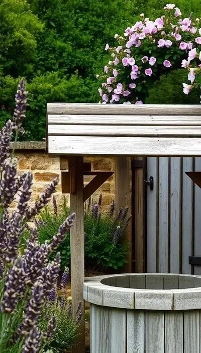 - Декоративные элементы: Колодцы, телеги, скворечники, старые бочки, лейки, садовые инструменты – все это создает атмосферу деревенской жизни и придает саду индивидуальность.