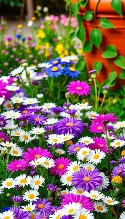 - Астры: Осенние астры продлевают период цветения и радуют глаз яркими красками.