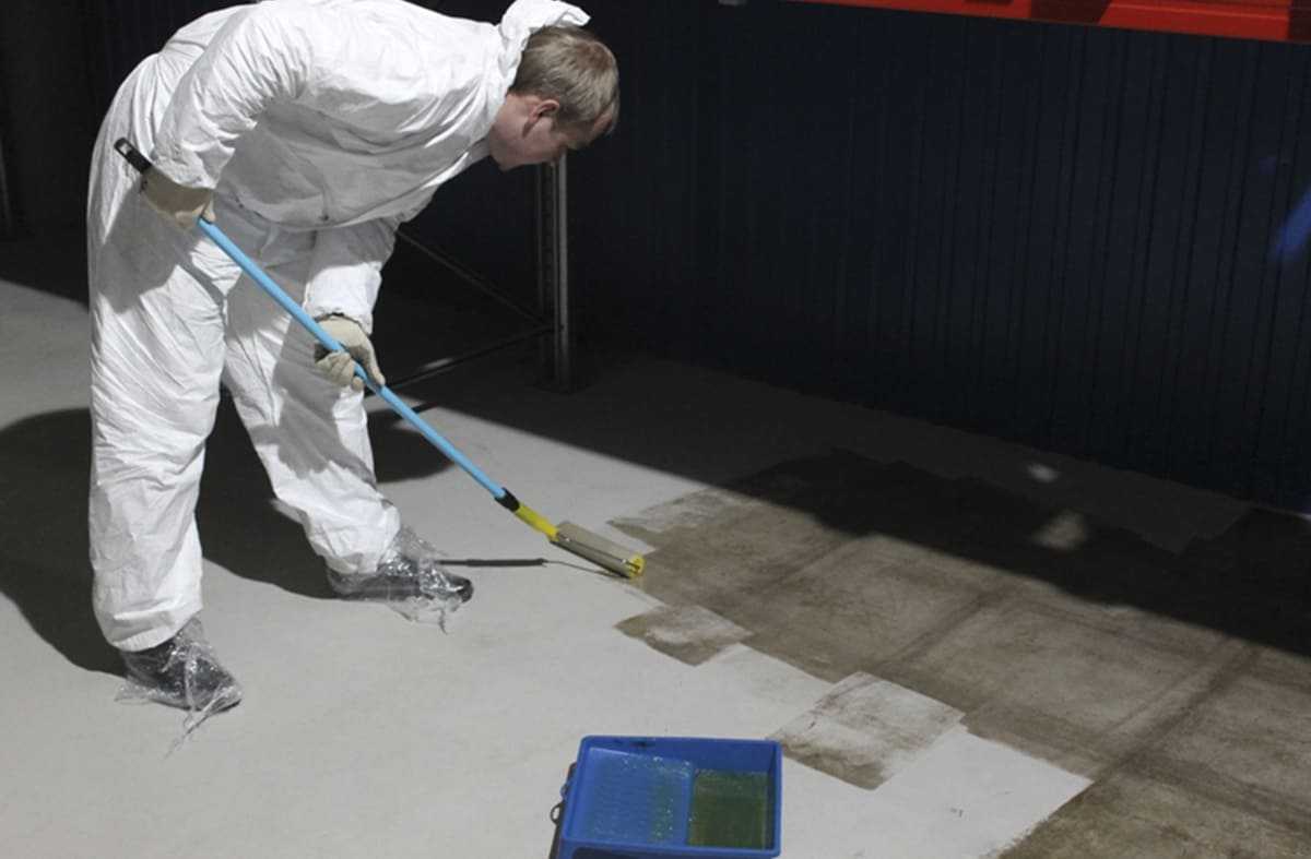 Полиуретановая разновидность заполняет собой поры и мелкие сколы бетона, делая поверхность максимально прочной. Наносить подобное средство можно валиком и кистью — кому что удобнее.