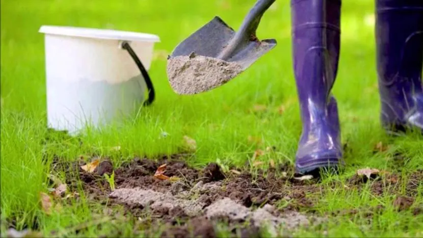 - Использовать смесь гашеной извести и песка, рассыпая ее по лужайке тонким слоем. Известкование проводят 2-3 раза, выбирая сухой осенний или зимний день. Не лишней будет подкормка органикой (например, компостом).