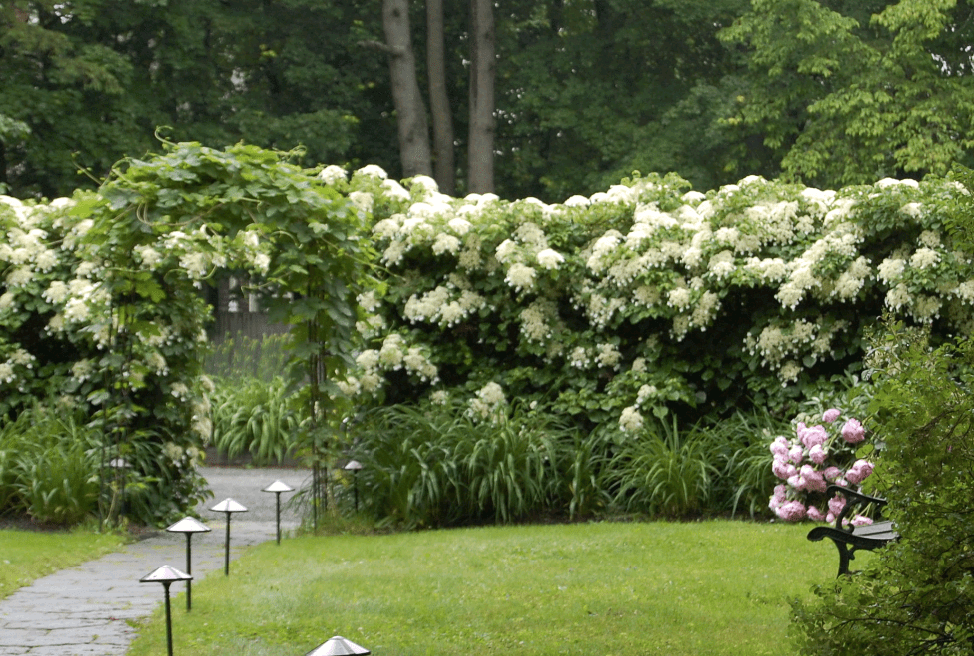 Удивительно, но Гортензии бывают и вьющиеся. Черешковая, или плетистая гортензия родом из США — это ползучий кустарник длиной 8 — 15 м. При благоприятном климате и хорошем уходе длина может достигать 20 м. К опоре гортензия прикрепляется воздушными корнями.
