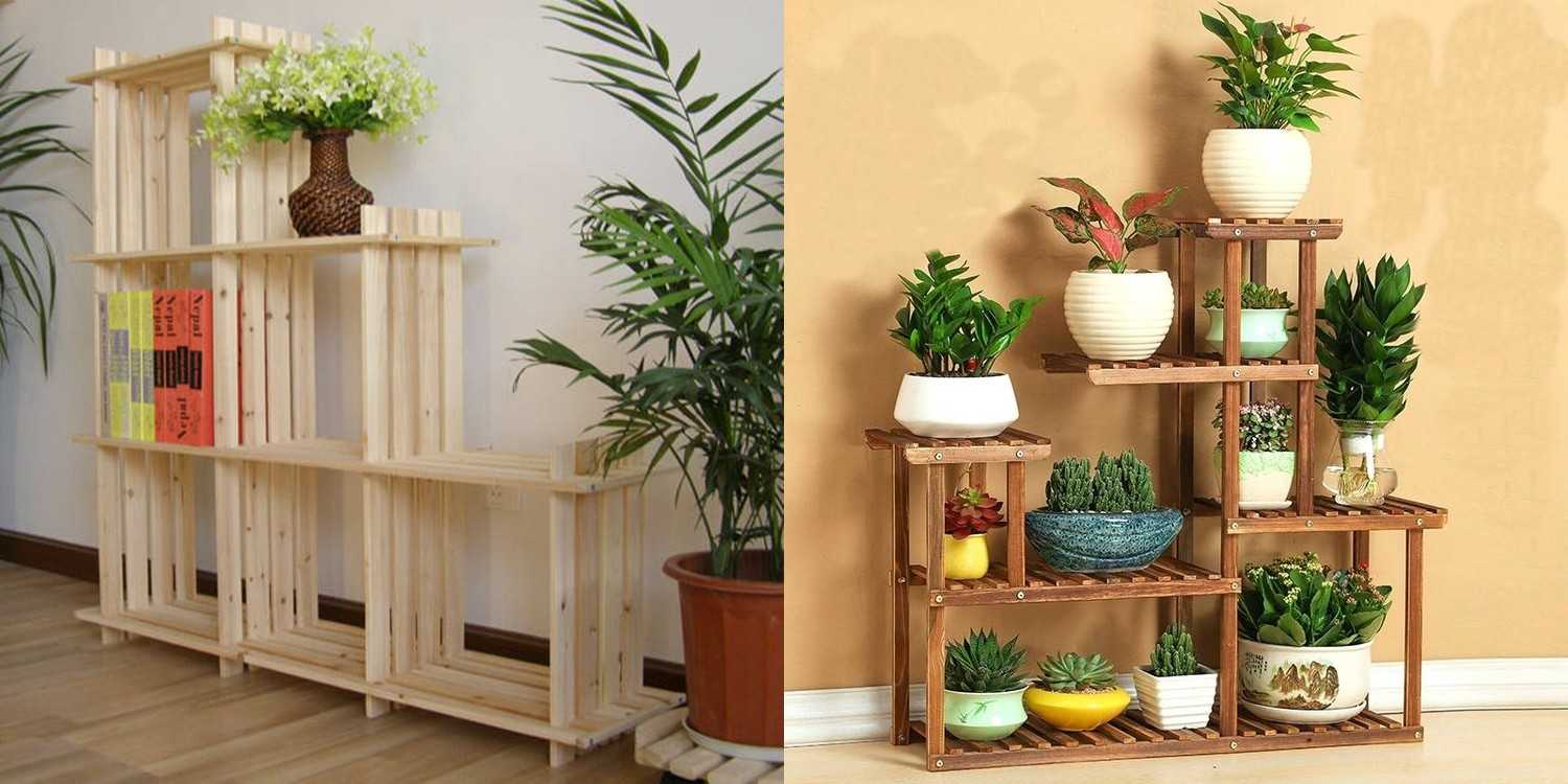 Полки могут быть разными, но всегда можно придумать что-то оригинальное. Предлагаем вам сделать цветочную полку-ширму своими руками, очень удобная штука, чтобы разделить комнатное пространство. Причем это не просто мобильная перегородка, а еще и стеллаж для цветов, так что будет выполнять сразу две функции.