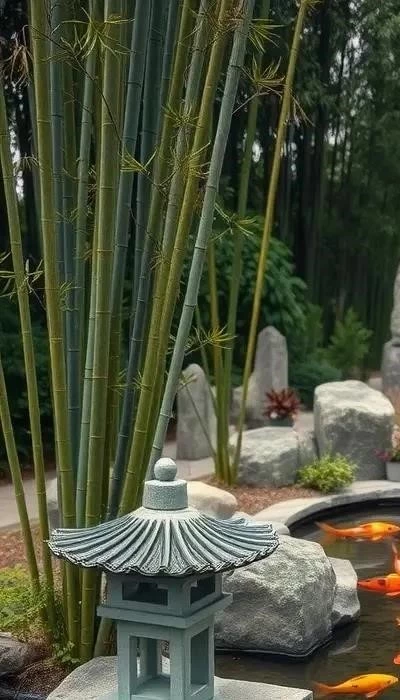 - Растения: Используйте растения, характерные для китайского стиля, такие как бамбук, сосны, сливы и хризантемы.