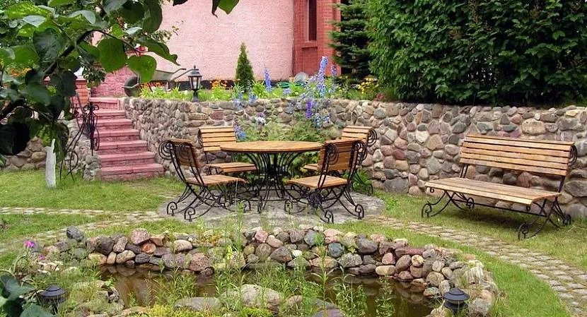 - плоский участок смотреться меньше равного по площади разноуровневого. Если природа поскупилась на перепады рельефа, их можно создать самостоятельно. Дополнительный уровень сделает пространство более объемным. В этих целях подойдут альпийская горка, ступеньки, подпорная стенка, небольшой подиум. Зону отдыха можно наоборот заглубить;