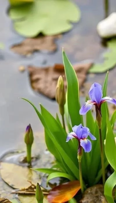 - Ирисы: Цветущие растения, которые можно высаживать вдоль берега.