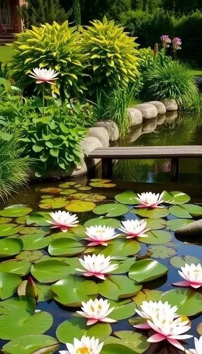 - Естественного стиля: Имитируют природные водоемы, с плавными берегами и обилием растений.