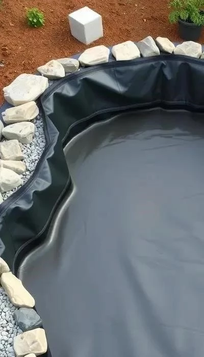 - Заполнение водой: Медленно заполните пруд водой, чтобы избежать повреждений пленки.