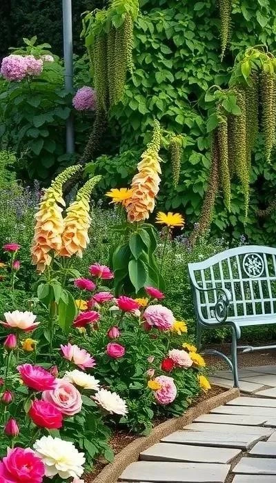 - Пионы: Ароматные и пышные цветы, которые придают саду романтичный вид.