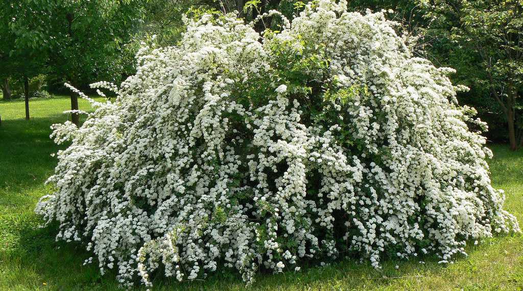 Ниппонская – шаровидный куст высотой около 1,5 метров. Отличается круглыми листьями и белыми цветками, облепляющими побег. Начинает цвести в мае, период цветения длится 3 недели. Она морозоустойчива и не требовательна к почве. Самые популярные сорта – Сноумаунд и Халвордз Силвер.