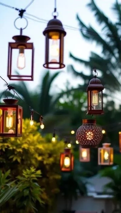 - Подвесные фонари: Создают романтическую атмосферу, идеально подходят для террас, веранд и пергол. Могут быть как электрическими, так и на солнечных батареях.