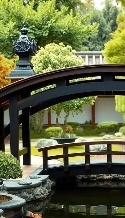 Каменные фонари (торо) освещают путь, мостики символизируют переход, беседки (тясицу) предназначены для чайных церемоний, а ограды и ширмы создают ощущение уединенности.