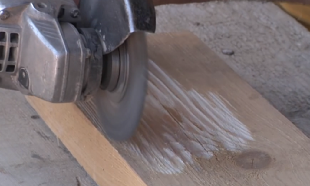 Подготовленнуюструганную заготовку обрабатывают болгаркой. На этом этапе браширования дискомболгарки разрушают мягкие слои древесины.